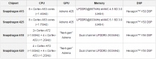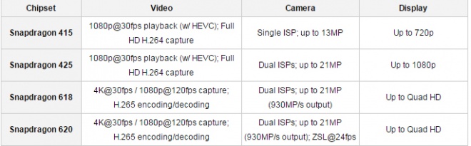 Lançados recentemente, o novo lote de processadores da Qualcomm traz os Snapdragons 415, 425, 618 e 620 como as mais novas opções para o mercado. Como de costume, a fabricante traz um monte de informações a respeito dos chipsets, incluindo as especificações de cada um.