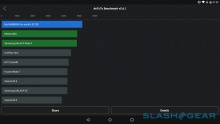 O Slashgear, para trazer benchmarks, conseguiu colocar as mãos no Qualcomm Mobile Developer Platform (MDP), um hardware especialmente feito para desenvolvedores voltado a estes fins. O tablet MDP possui tela 4K e 4 GB de memória RAM, enquanto o celular é 2K com 3 GB de RAM.