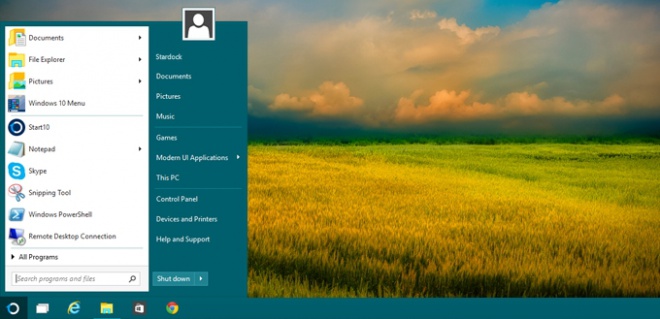 Em vez de incluir uma miscelânea de interfaces, o Start10 utiliza um design clássico (com stylings modernos) que os usuários do Windows 7 estão familiarizados. Você pode usá-lo para acessar aplicativos desktop ou aplicativos modernos sem precisar ir para a tela inicial, oferecendo também listas e menus de contexto (removidos no Windows 10), e ferramenta de busca sem a barra de pesquisa sempre ocupando espaço na barra de tarefas.