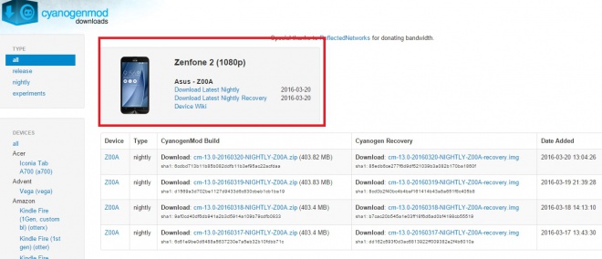 Os usuários dos aparelhos Zenfone 2 Laser e Zenfone 2 Selfie (Z00T) já podem recorrer às primeiras ROMs CM13 desde o início do mês. Agora é o momento daqueles que possuem o Zenfone 2 (Z00A - 1080p e Z008 - 720p), que também passaram a contar com alguns pacotes Nightly.
